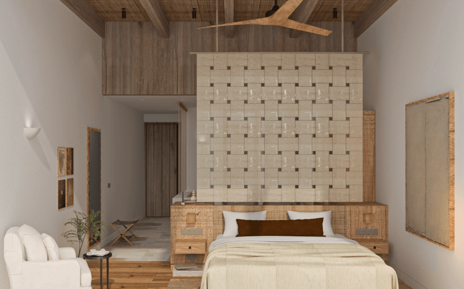 These two-bedroom cabanas are perfect for friends traveling together. Inspired by light and stillness, our cabanas draw gently from the ancient soul of Lycia and the quiet clarity of Japanese design, featuring one bedroom with a full bed, and one bedroom with two twin beds, as well as generous shared living space, and majestic views.